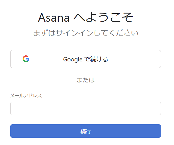 アプリ一覧画面でAsanaを選択するとサインイン画面が表示されます。