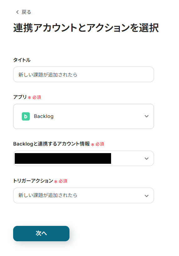 ステップ3:Backlogのトリガーアクション設定