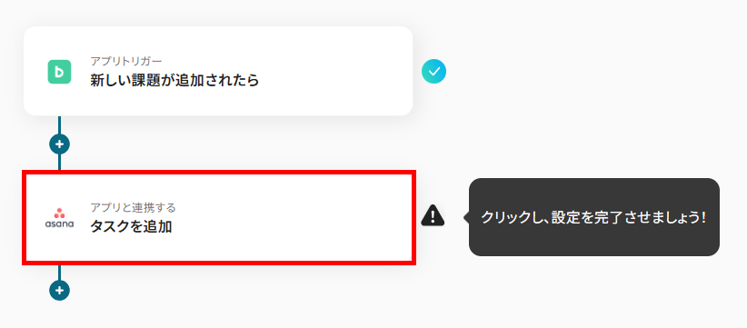 次にAsanaへタスクを追加する設定をします。