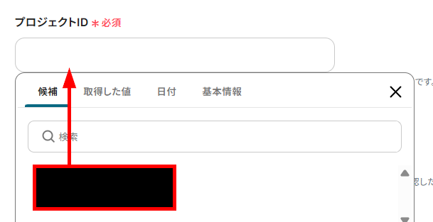 タスクを登録するプロジェクトとセクションのIDを候補から設定しましょう。
