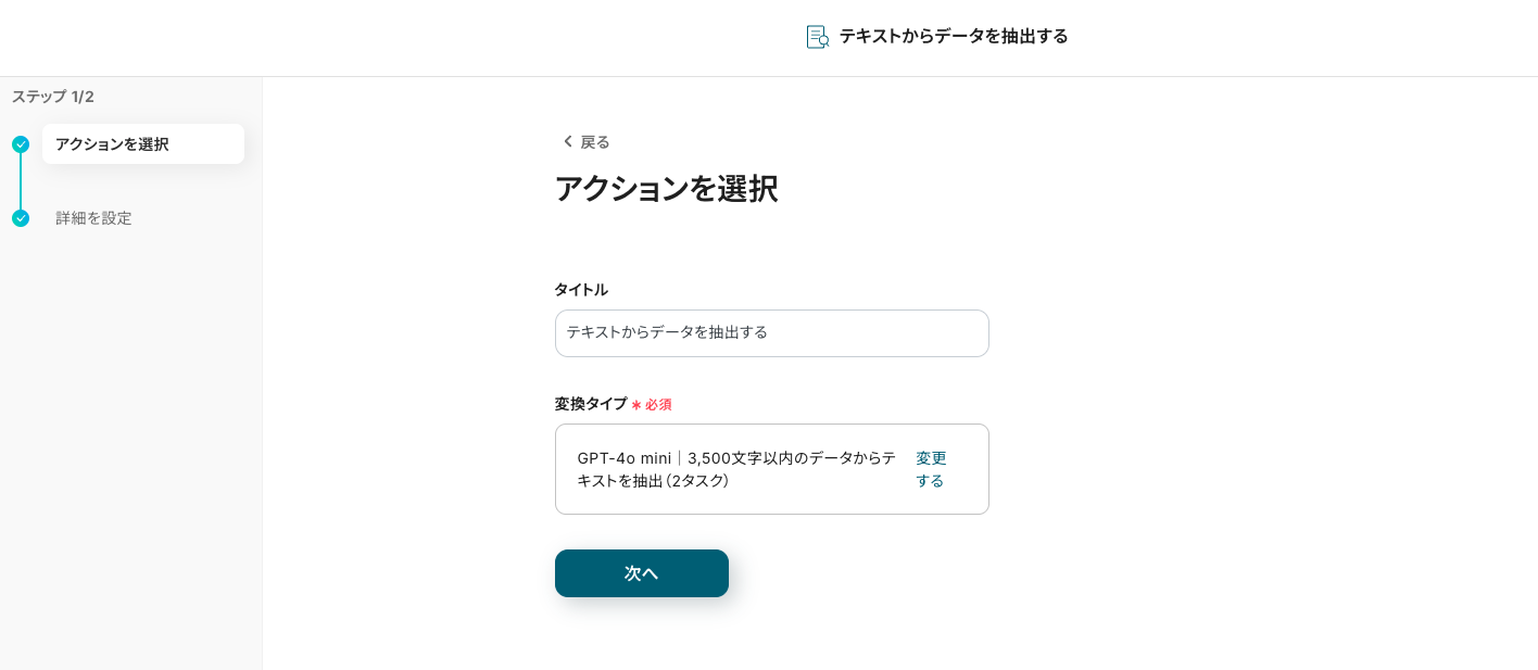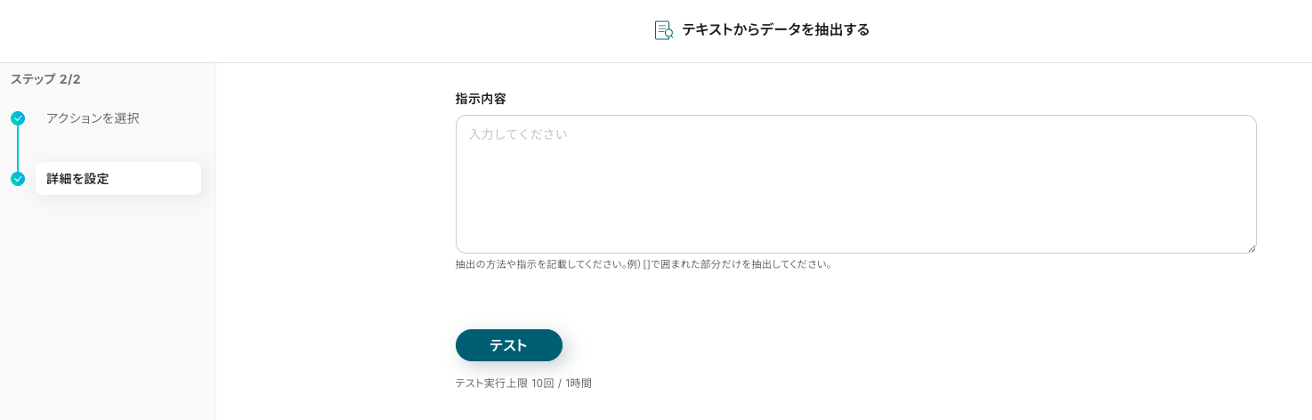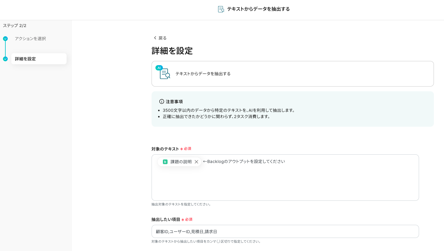 ステップ4:テキストからデータを抽出する「テキストからデータを抽出する」
