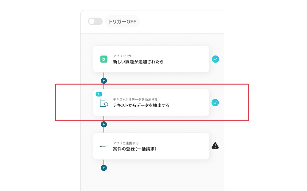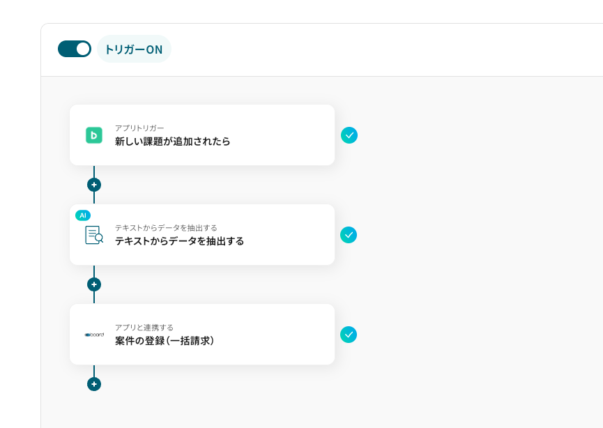 この連携では、必要に応じてAIや正規表現を用いて特定の情報を抽出したり、条件分岐によって処理を制御したりすることも可能です。
