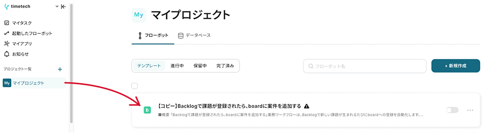コピーしたテンプレートは、マイプロジェクトに追加されます。マイプロジェクトは左のメニューバーからアクセス可能です。