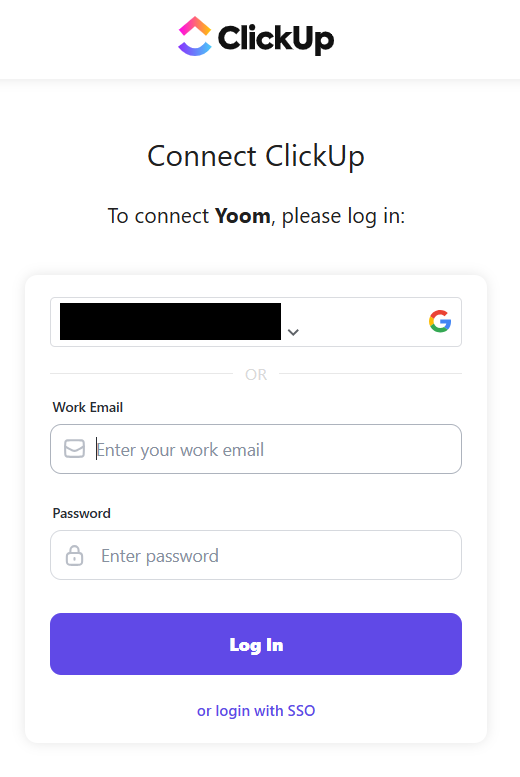 マイアプリ一覧でClickUpを選択するとログイン画面が表示されます。
