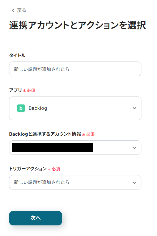 ステップ3:Backlogのトリガーアクション設定