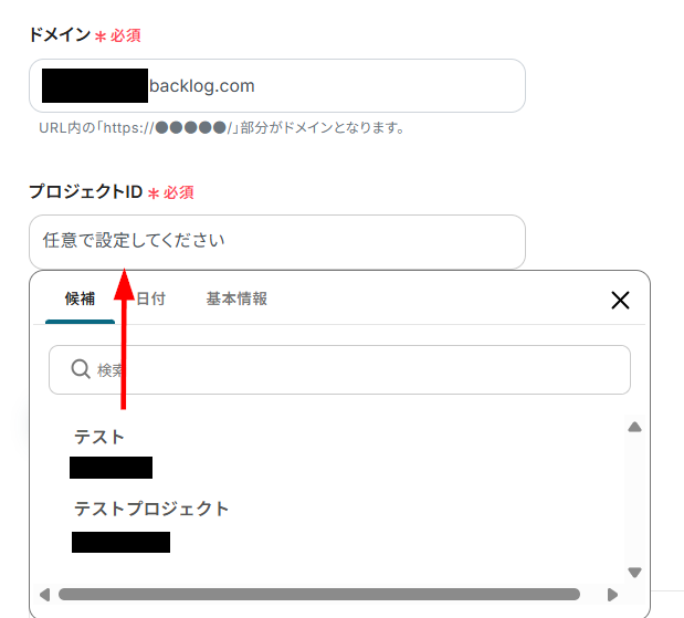 ドメインを注釈に沿って入力し、プロジェクトIDを候補から選択しましょう。