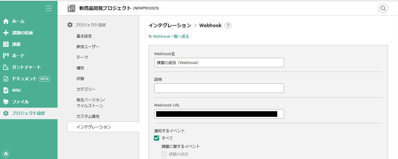 これで、Webhookの設定完了です!