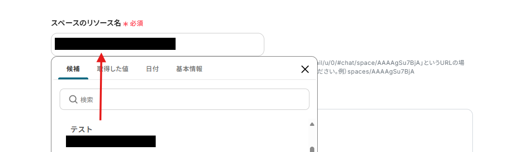 スペースのリソース名は、枠内をクリックし表示された候補から任意で選択してください。
