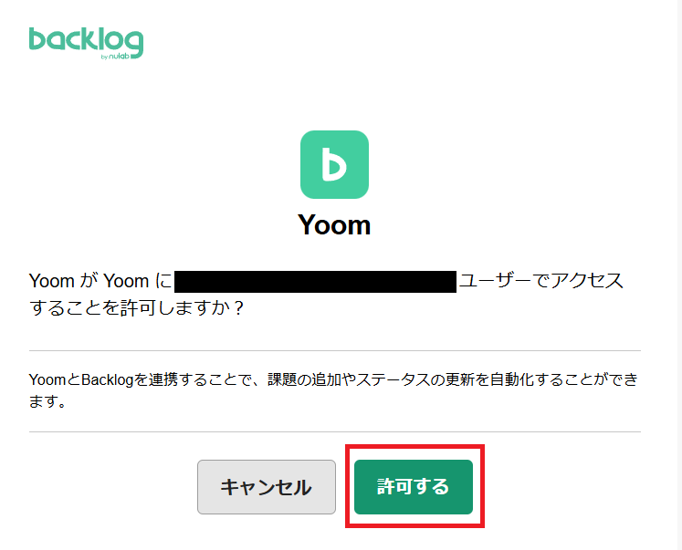 YoomとBacklogを連携させることの確認画面に移ります。「許可する」を押しましょう。