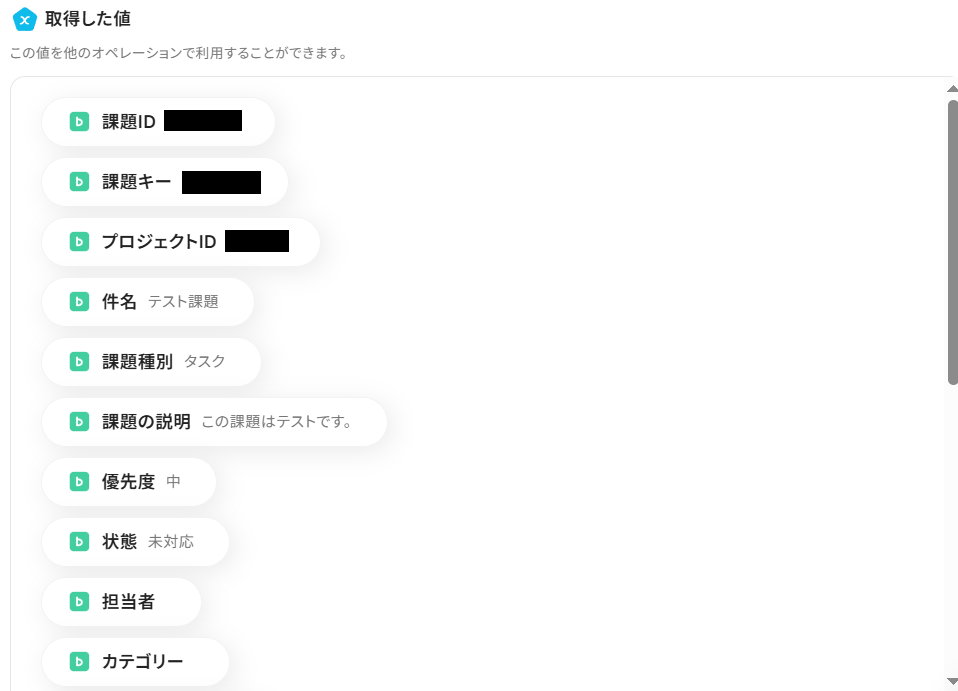 ここで取得した値を用いることにより、今後新たにBacklogで課題が追加された場合、その都度新しい内容を反映した件名をWrikeのタスクタイトルとして活用できます。