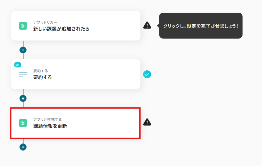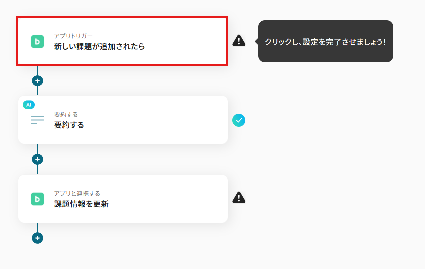 この自動化は、Backlogで新しい課題が作成された際に、その課題の説明文をAIが自動的に要約し、その要約内容で課題の詳細情報を更新するものです。