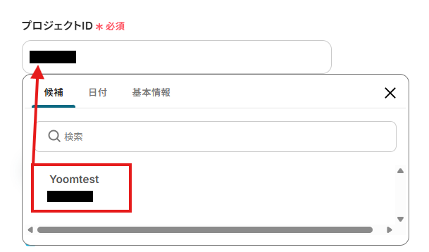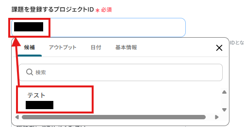 「課題を登録するプロジェクトID」は、入力欄をクリックして表示される候補から選択してください。