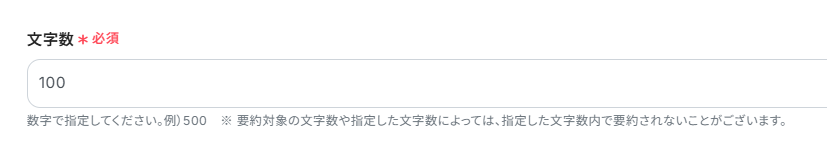 「文字数」は、出力する要約の文字数を数字で入力してください。