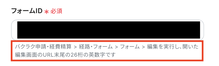 「フォームID」の入力は、赤枠の説明文を確認しながら行ってください。