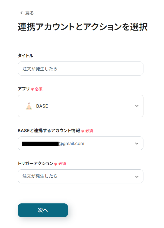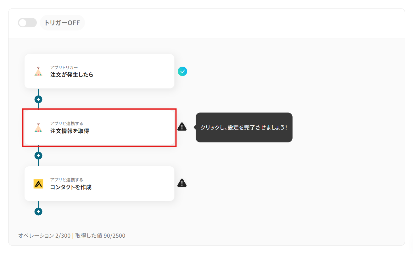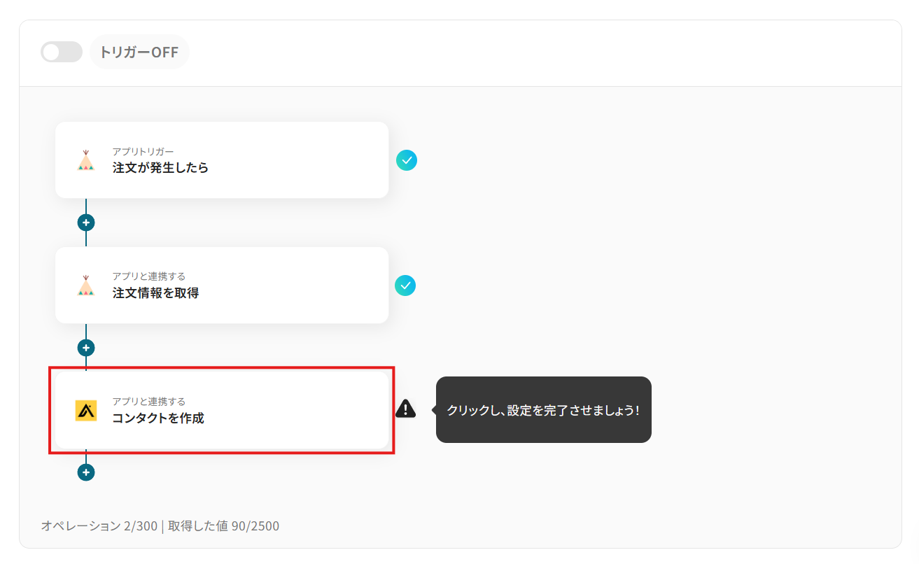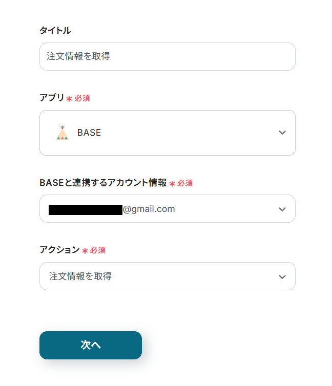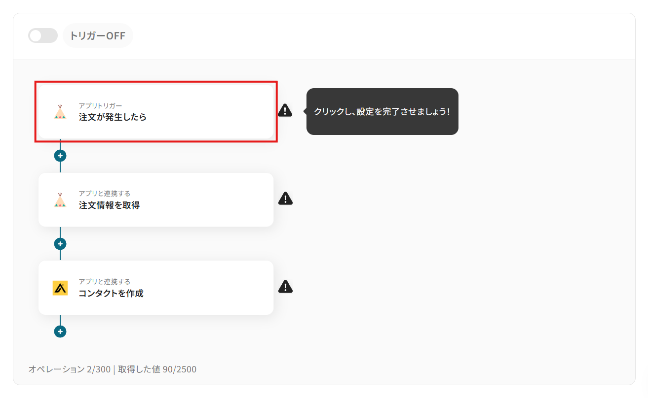 - BASEのトリガー設定と各アクション(注文詳細取得・コンタクト作成)の設定