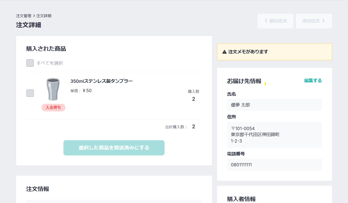 注文のたびに自動チェック&登録が行われ、運用がぐっと楽になります。