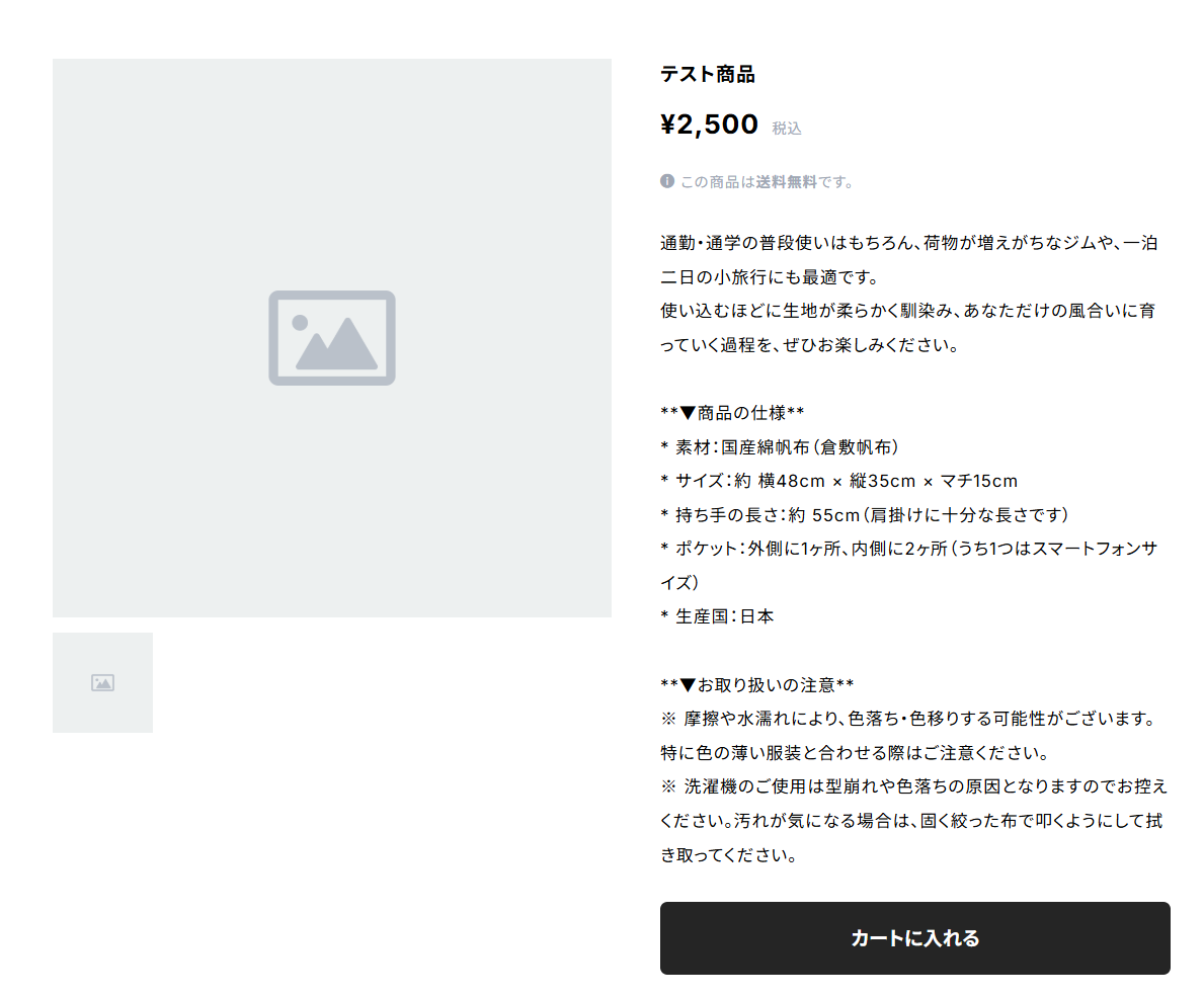 今回は、テストとしてBASEに以下のような商品を作成しています。