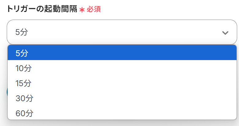 ・トリガーは5分、10分、15分、30分、60分の間隔で起動間隔を選択できます。
