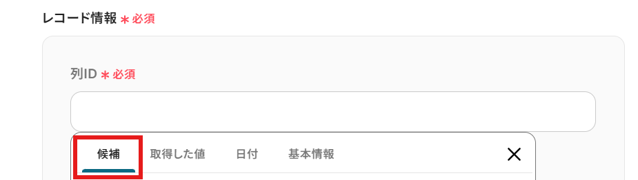 レコード情報:列IDは先ほどと同じように候補から選びましょう。