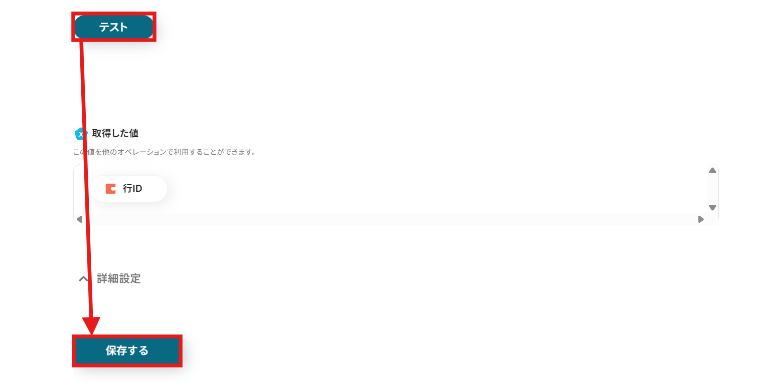 登録ができたらYoomに戻り、「テスト」をクリックしましょう。