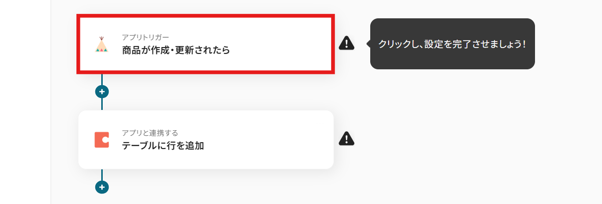 まず、一番上の「商品が作成・更新されたら」のアイコンをクリックします。