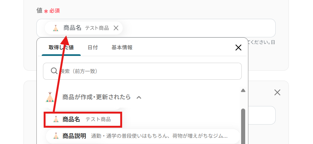 値は元から設定されています。変更したい場合は。入力欄をクリックし、BASEから取得した情報を引用しましょう。