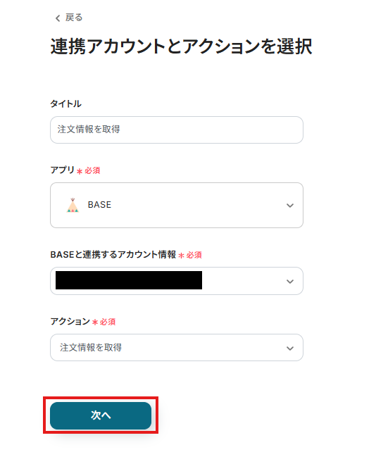 ステップ4:BASEの情報取得設定