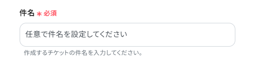 「件名」は、任意でチケットの件名を設定してください。入力欄をクリックして表示される取得した値から選択することもできます。