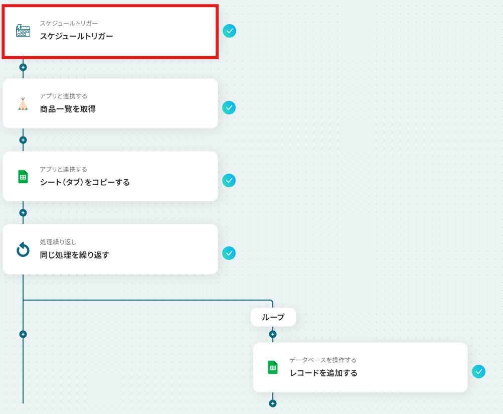 それではここから代表的な例として、毎日決まった時間にBASEの商品一覧を取得し、Google スプレッドシートに自動で追加するフローを解説していきます!