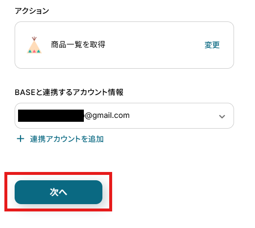- オペレーションで、BASEの「商品一覧を取得」アクションを設定します。