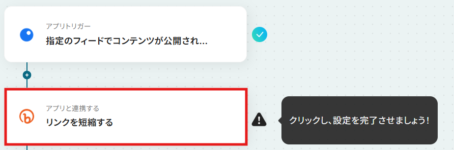 ステップ4:Bitlyのアクション設定 次に、Inoreaderから取得した記事のリンクをBitlyで短縮する設定を行います。 「リンクを短縮する」をクリックしてください。