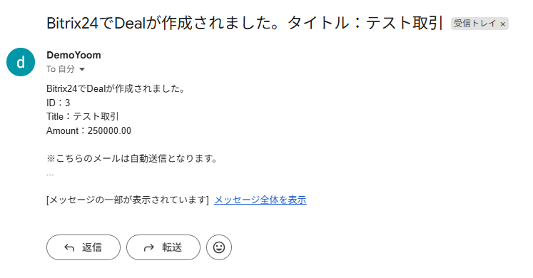 Bitrix24で新しいDeal(案件)が作成されたタイミングで、関係者や担当者宛てにOutlookから自動で通知メールを送信します。