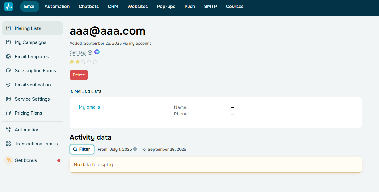 SendPulseを参照し、メールアドレスが追加されていることも確認しましょう。