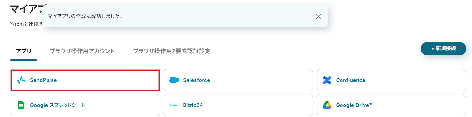 マイアプリにSendPulseが追加されたことを確認出来たら、SendPulseのマイアプリ登録は完了となります。