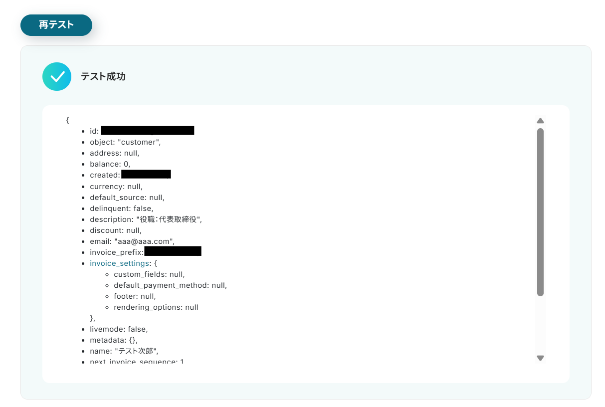 設定が完了したらテストボタンをクリックしてください。