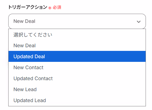 ですが、Bitrix24のトリガーを更新系(Update DealやUpdate Lead等)に、Trelloのアクションも「カードを更新」に変更することで、Bitrix24で情報が更新された場合でも起動させることができます。