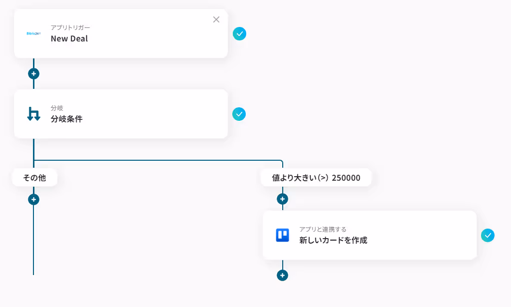 「金額が250,000より大きい場合のみTrelloにカードを作成する」フローを作成することができます。