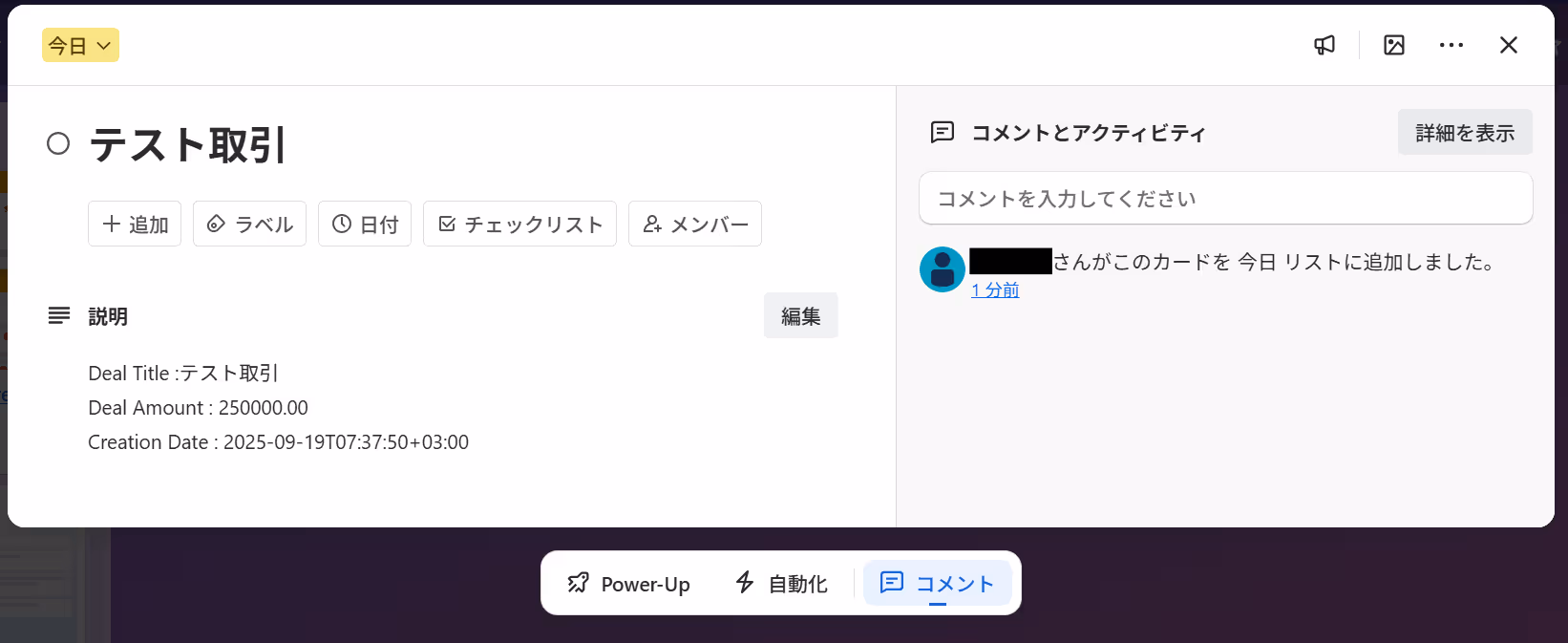 (※実際にTrelloにカードが作成されます。)