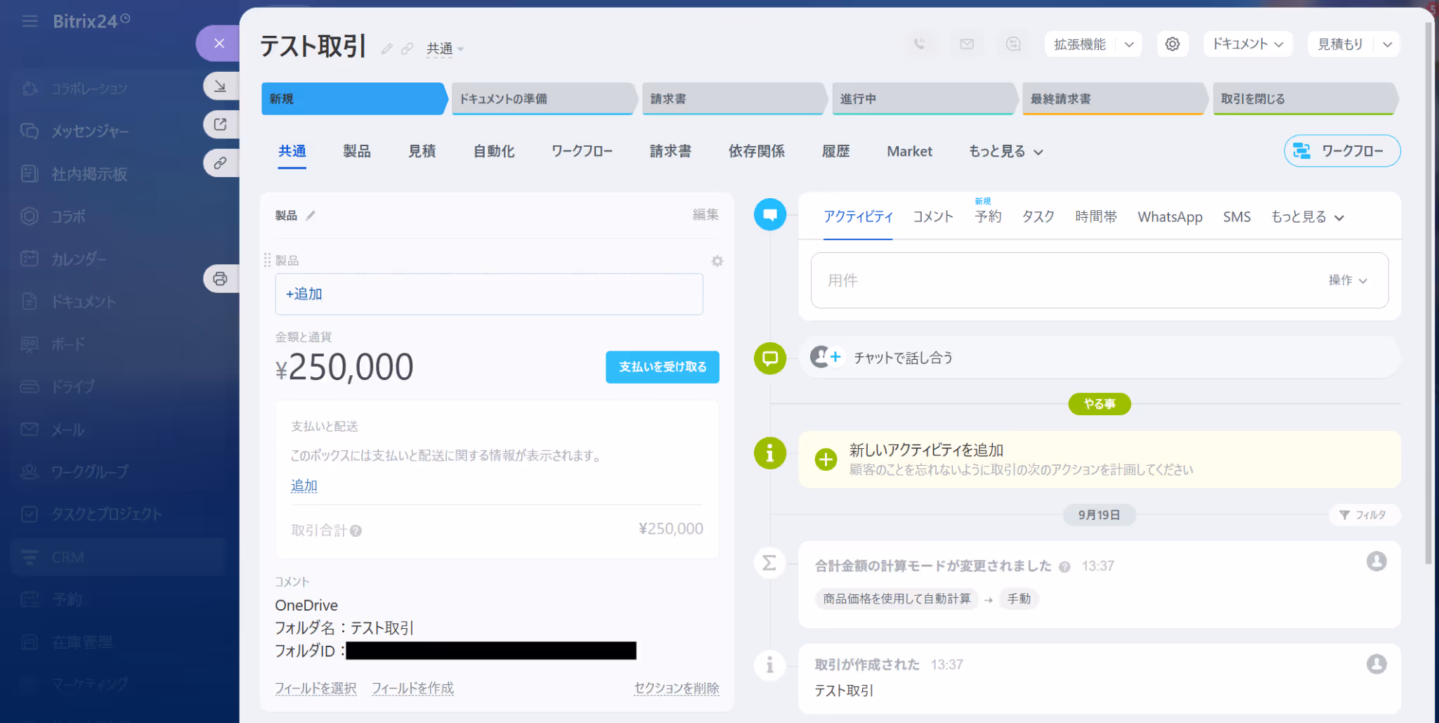 次の設定を行う前にBitrix24にて、Dealを作成しておきましょう。