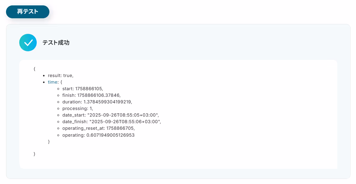 設定が完了したらテストボタンをクリックしてください。