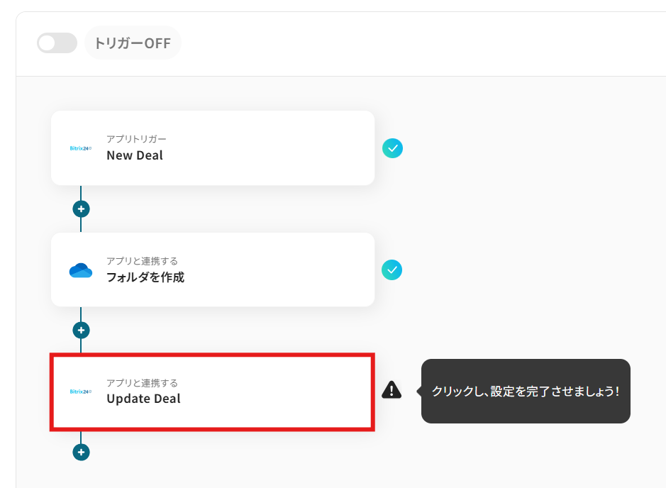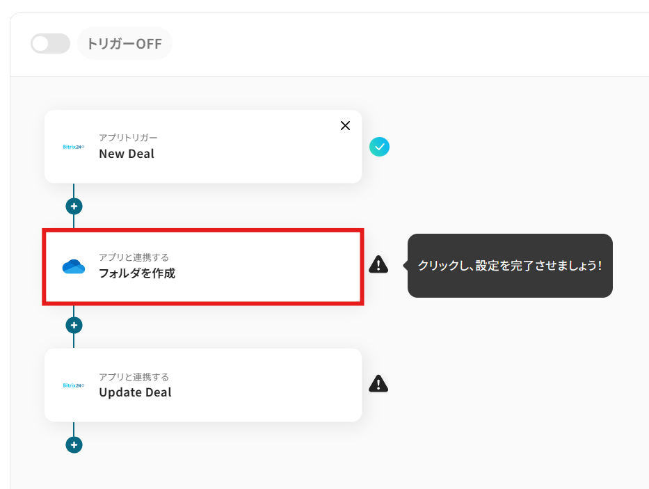 - Bitrix24のトリガー設定およびOneDriveのアクション設定