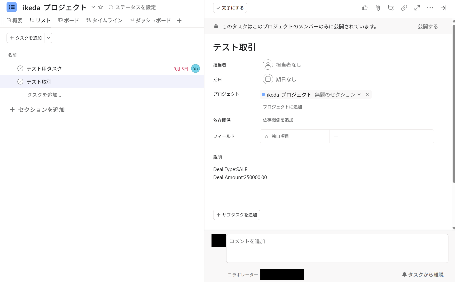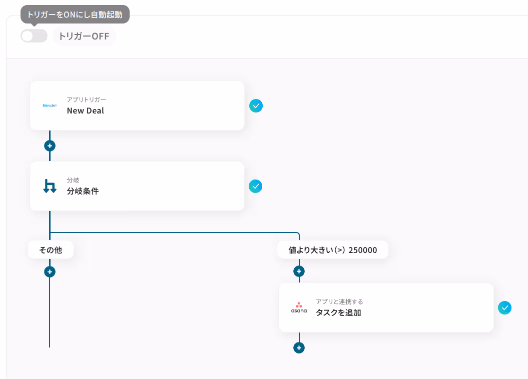 この自動化も、Bitrix24の情報をそのままAsanaへ連携する直接連携のパターンであり、営業の初動を加速させます。