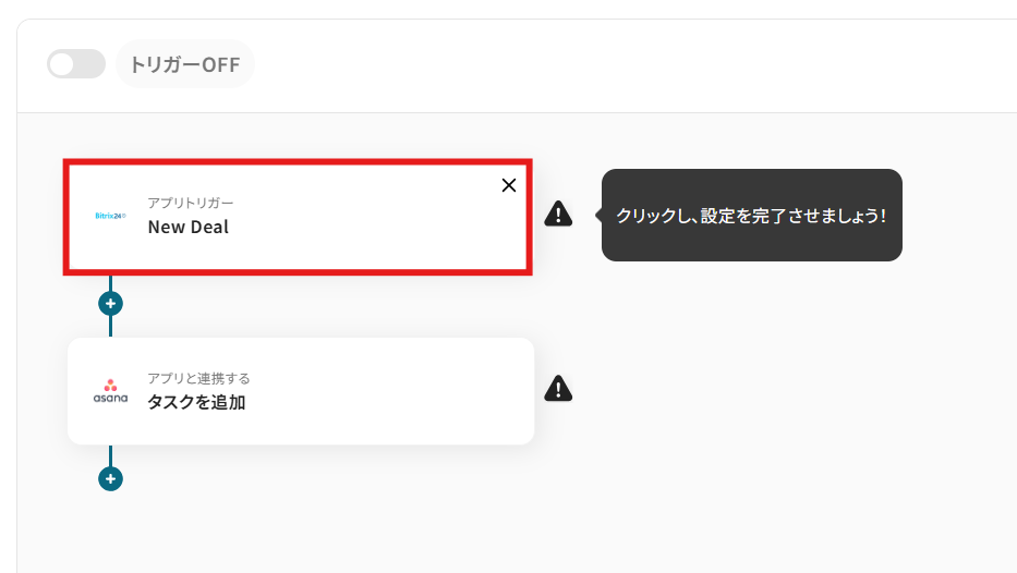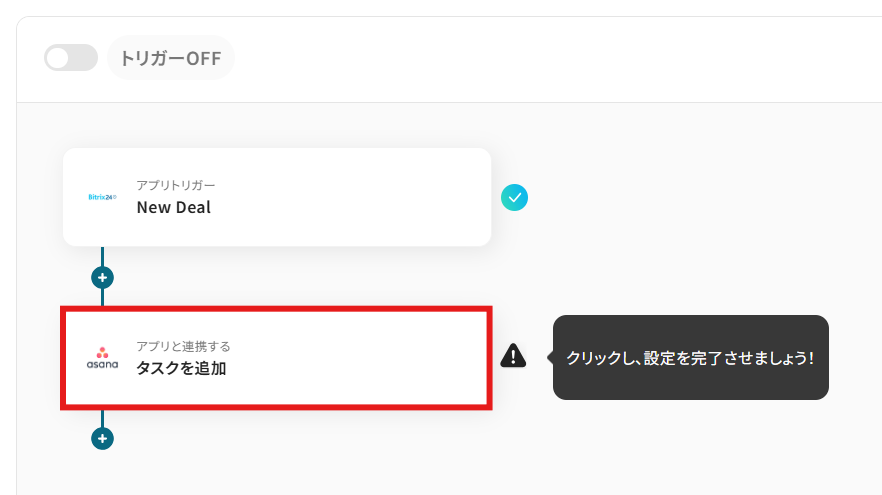 - Bitrix24のトリガー設定およびAsanaのアクション設定