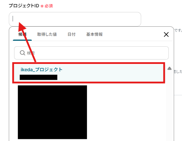 - プロジェクトID:プルダウンよりタスクを作成するAsanaのプロジェクトを選択してください。