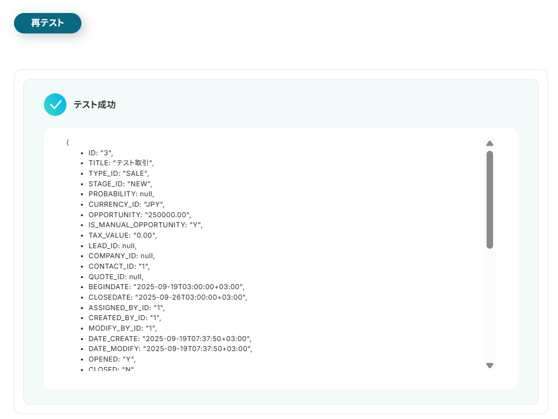 次の設定を行う前にBitrix24にて、Dealを作成しておきましょう。