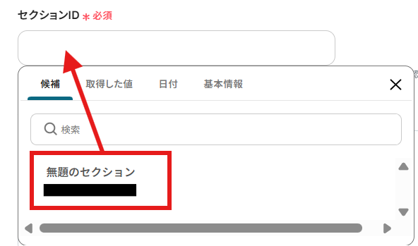 - セクションID:プルダウンよりタスクを作成するセクションを選択して下さい。