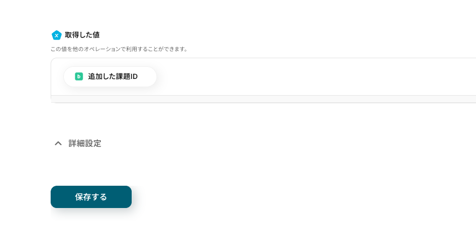 成功すると、追加した課題情報から項目と値が取得できます。この項目と値をYoomでは「アウトプット」と定義しています。