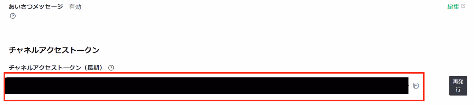 3.下にスクロールしていくと、チャネルアクセストークンが表示されます。