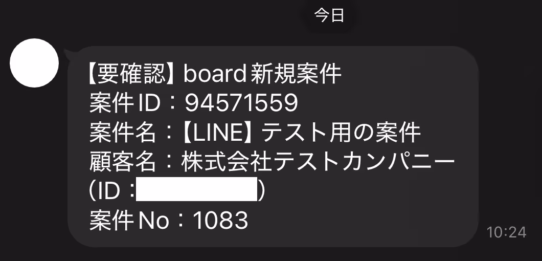 boardで新しい案件が作成された際に、その情報をLINE公式アカウントに自動で通知する連携です。