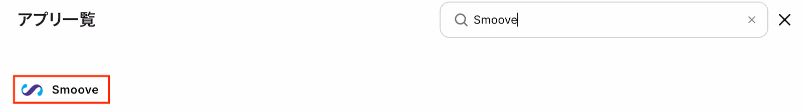 新規接続をクリックしたあと、アプリのメニュー一覧が表示されるのでSmooveと検索し、対象アプリをクリックしてください。